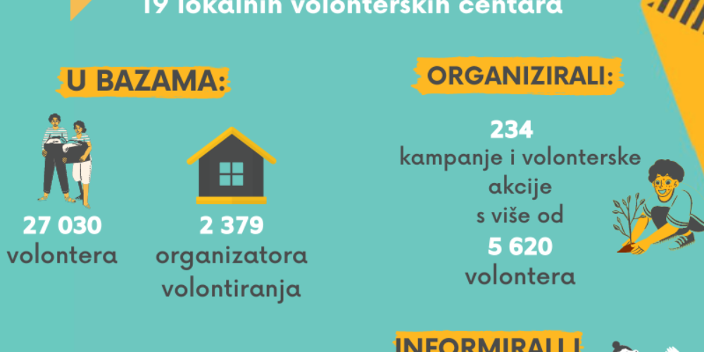 Hrvatski centar za razvoj volonterstva objedinio je rezultate 23 hrvatska volonterska centra za 2021. godinu.