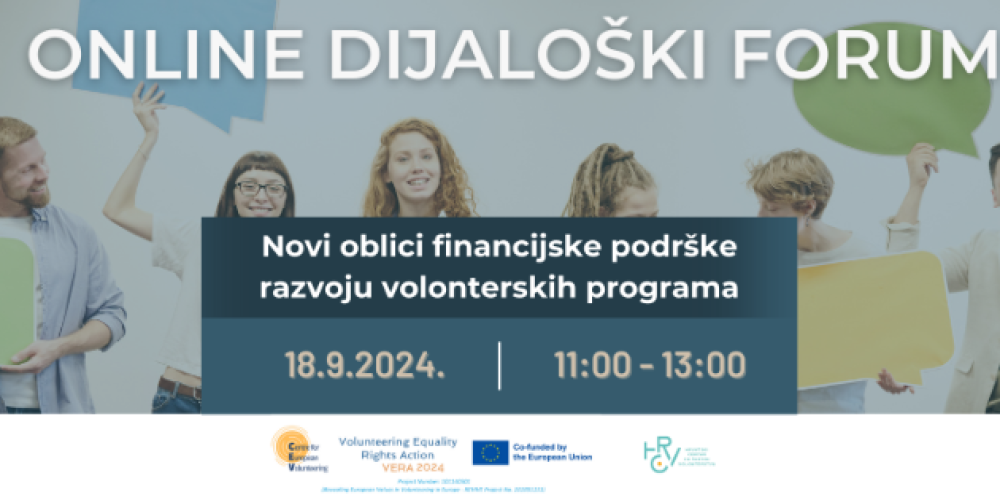 Veliko nam je zadovoljstvo pozvati vas na sudjelovanje na online dijaloškom forumu koji će se održati 𝟏𝟖. 𝐫𝐮𝐣𝐧𝐚 𝟐𝟎𝟐𝟒. 𝐠𝐨𝐝𝐢𝐧𝐞, 𝐬 𝐩𝐨𝐜̌𝐞𝐭𝐤𝐨𝐦 𝐮 𝟏𝟏 𝐬𝐚𝐭𝐢, u organizaciji Hrvatskog centra za razvoj volonterstva (HCRV), a uz podršku Volonterskog centra Zagreb.
