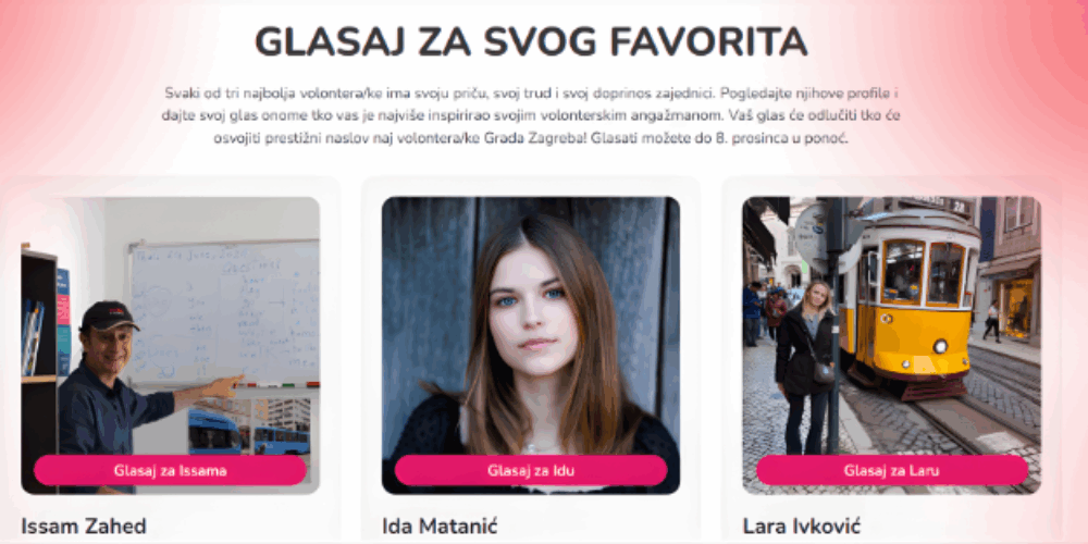 Građani su ti koji odlučuju tko će ponijeti titulu naj volontera ili volonterke Grada Zagreba za 2025. godinu. Svi zainteresirani mogu posjetiti službenu stranicu Volonterskog Oskara i dati glas svom favoritu. Glasanje je otvoreno do 8. prosinca 2025. u ponoć.
